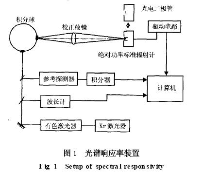 如果不滿足以上4 個(gè)條件, (6) 式將不適用。為了提高光譜分辨率, 要求雙單色儀的光譜帶寬僅在幾納米內(nèi), 其結(jié)果是僅有幾毫瓦的激光功率可以利用。這對一個(gè)絕對輻射計(jì)同光電二極管直接比較是行不通的, 因此必須在其中間加入更靈敏的二級(jí)標(biāo)準(zhǔn)作為傳遞。