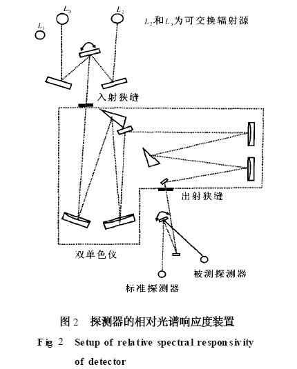 相對光譜響應(yīng)度測量用的傳遞標(biāo)準(zhǔn)是非選擇性的腔形熱電堆, 為了保持它的非選擇性, 熱電堆必須在窗口外操作。但由于沒有窗口, 探測器隨外界空氣波動(dòng)很靈敏, 它將產(chǎn)生一個(gè)毫瓦級(jí)的等效噪聲功率。為了準(zhǔn)確測量, 必須提供幾十毫瓦的輻射功率, 該輻射功率對雙單色儀來說是不能接受的。如果使用單個(gè)單色儀, 則將會(huì)產(chǎn)生大量的雜散輻射, 但不會(huì)影響測量準(zhǔn)確度, 因?yàn)楸恍?zhǔn)的熱電堆與腔探測器一樣無選擇性。
