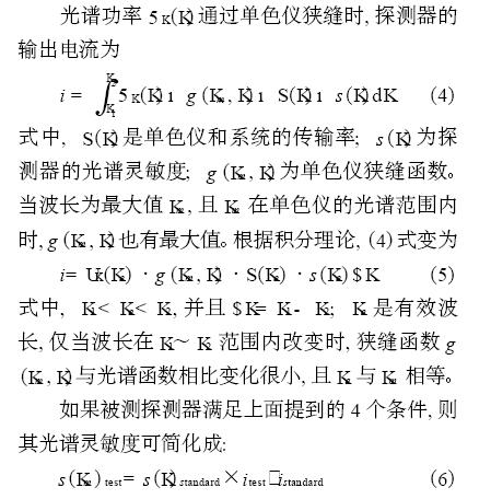 從另一方面講, 使用腔探測器對選擇性探測器( 如光電二極管v (K) ) 進(jìn)行校準(zhǔn)時(shí), 由于雜散輻射的存在導(dǎo)致校準(zhǔn)失敗(但使用已校準(zhǔn)的同類型v (K) 探測器對其進(jìn)行校準(zhǔn)除外)。同理可知, 單個(gè)單色儀的高帶寬不會(huì)產(chǎn)生嚴(yán)重的誤差, 且(6) 式仍適用。